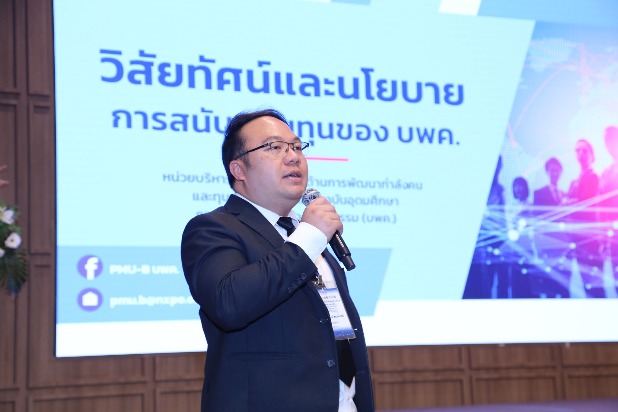 – การแนะนำกรอบการสนับสนุนทุนวิจัย : ผู้อำนวยการหน่วยบริหารและจัดการทุนด้านการพัฒนากำลังคน และทุนด้านการพัฒนาสถาบันอุดมศึกษาการวิจัยและการสร้างนวัตกรรม (บพค.)