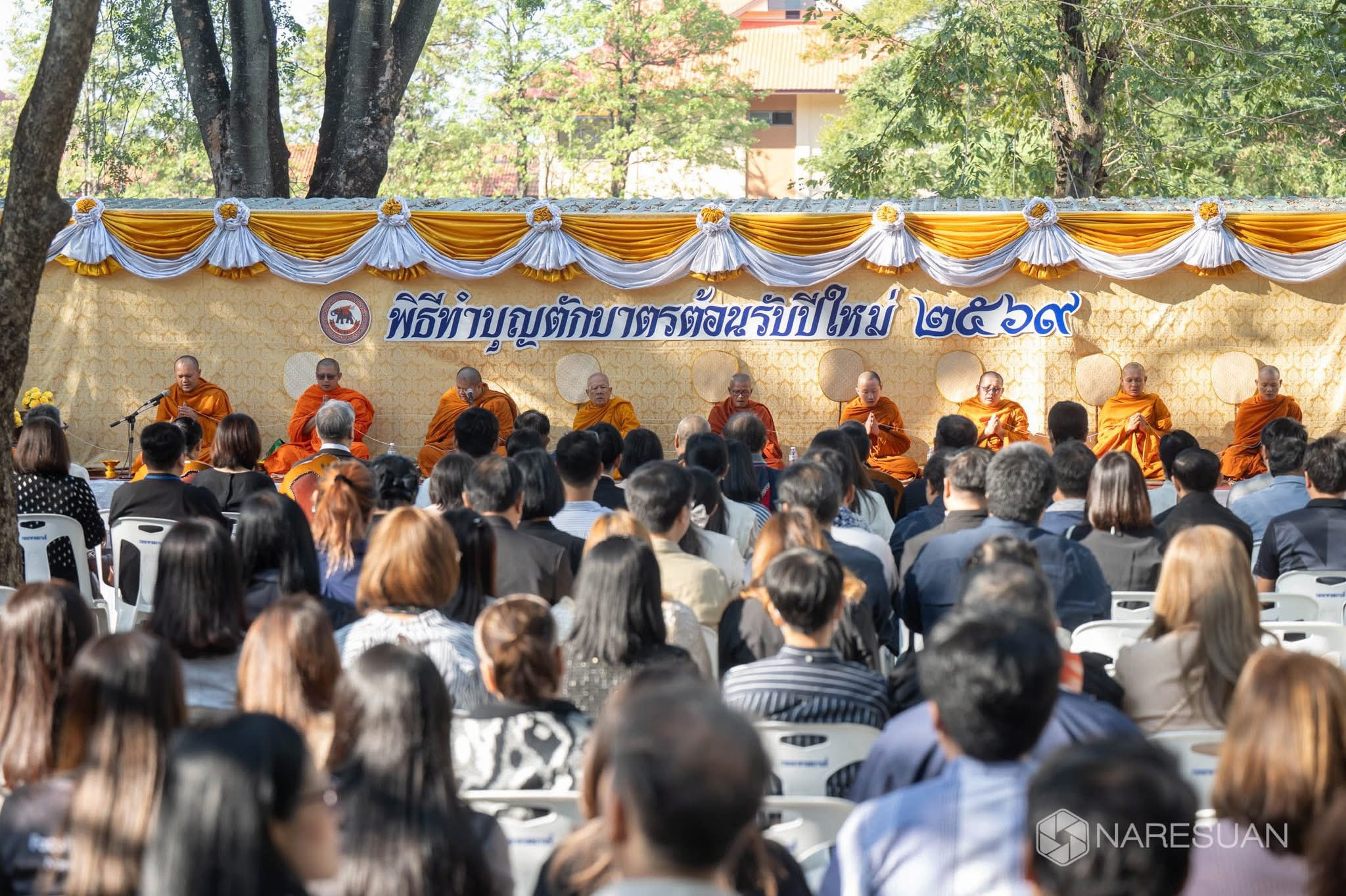 วันที่ 9 มกราคม 2569 นำทีมโดย นางเจนจิต นาคปรีชา ผู้อำนวยการกองการวิจัยและนวัตกรรม พร้อมด้วยบุคลากร ร่วมทำบุญตักบาตร เนื่องในโอกาสวันขึ้นปีใหม่ พ.ศ.2569 มหาวิทยาลัยนเรศวร จัดกิจกรรมทำบุญตักบาตรวันขึ้นปีใหม่ 2569 เพื่อความเป็นศิริมงคลแก่บุคลากรในมหาวิทยาลัยนเรศวร โดยมีกิจกรรมพิธีทำบุญ ตักบาตร ข้าวสารอาหารแห้ง แด่พระภิกษุ สามเณร จำนวน 36 รูป ณ บริเวณอาคารสำนักงานอธิการบดี มหาวิทยาลัยนเรศวร