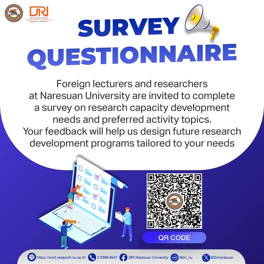 Foreign lecturers and researchers at Naresuan University are invited to complete our survey on research capacity development needs and preferred activity topics.