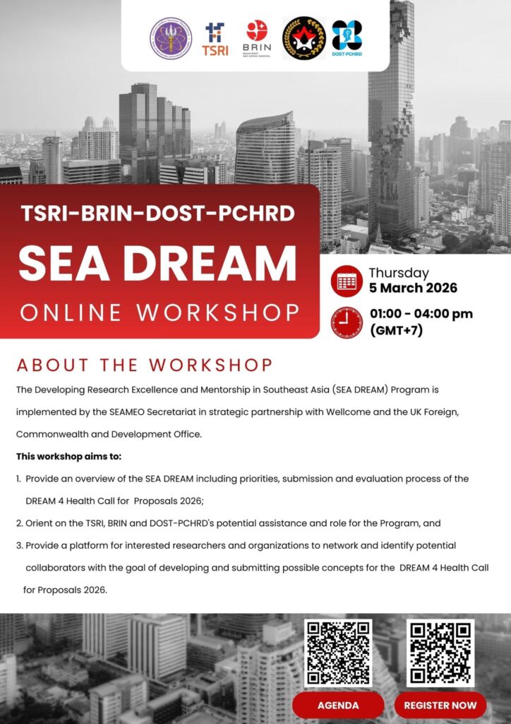 📣 ขอเชิญนักวิจัยและหน่วยงานที่สนใจเข้าร่วม SEA DREAM Online Workshop