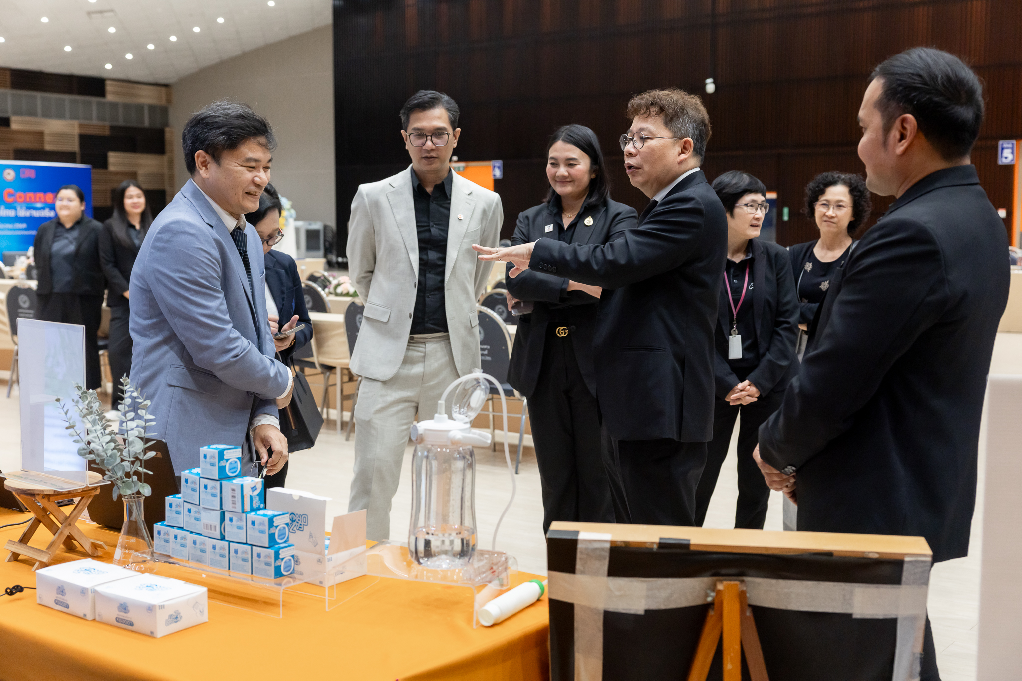 พร้อมการจัดนิทรรศการ ผลงานวิจัยพร้อมใช้ จำนวน 34 ผลงาน จาก 11 คณะ/วิทยาลัย
