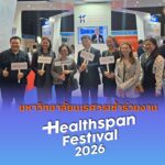 วันที่ 27 มีนาคม 2569 มหาวิทยาลัยนเรศวร นำทีมโดย ศาสตราจารย์ ดร.กรกนก อิงคนินันท์ รองอธิการบดีฝ่ายพัฒนางานวิจัยและนวัตกรรม พร้อมด้วยคณะผู้บริหารมหาวิทยาลัยนเรศวร เข้าร่วมงาน Healthspan Festival 2026 ซึ่งมีวัตถุประสงค์เพื่อแสดงความก้าวหน้าด้านองค์ความรู้ เทคโนโลยี และนวัตกรรมทางการแพทย์และสุขภาพ ตลอดจนสนับสนุนการเติบโตของอุตสาหกรรมด้านการแพทย์และสุขภาพของประเทศ