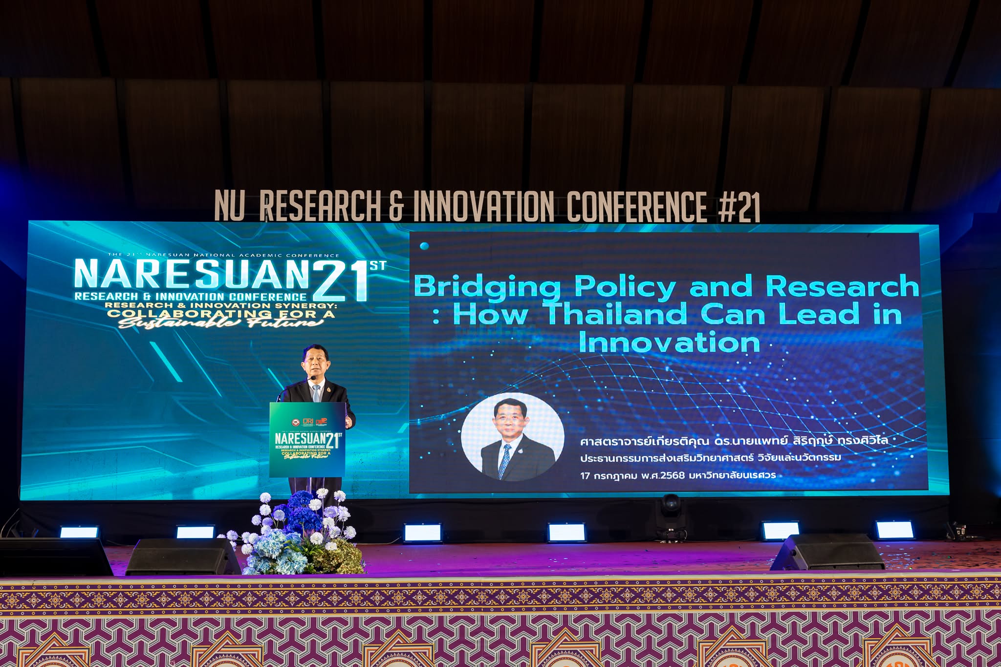 วันที่ 17 กรกฎาคม 2568 มหาวิทยาลัยนเรศวรได้จัดการประชุมวิชาการระดับชาติ “นเรศวรวิจัยและนวัตกรรม” ครั้งที่ 21 “Research & Innovation Synergy: Collaborating for a Sustainable Future” โดยได้รับเกียรติจาก รองศาสตราจารย์ ดร.ศรินทร์ทิพย์ แทนธานี รักษาราชการแทนอธิการบดีมหาวิทยาลัยนเรศวร กล่าวเปิดงาน