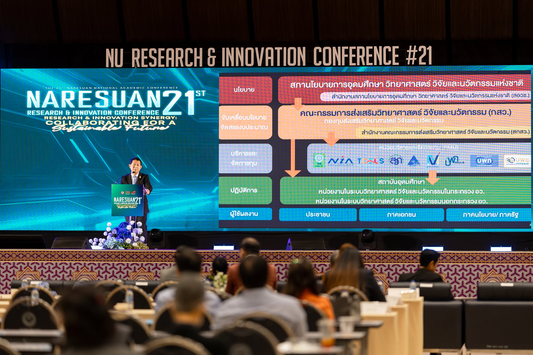 ภายใต้หัวข้อ “Research & Innovation Synergy: Collaborating for a Sustainable Future” ณ ศูนย์แสดงนิทรรศการและการจัดประชุมสมเด็จพระนเรศวรมหาราช (KNECC) มหาวิทยาลัยนเรศวร