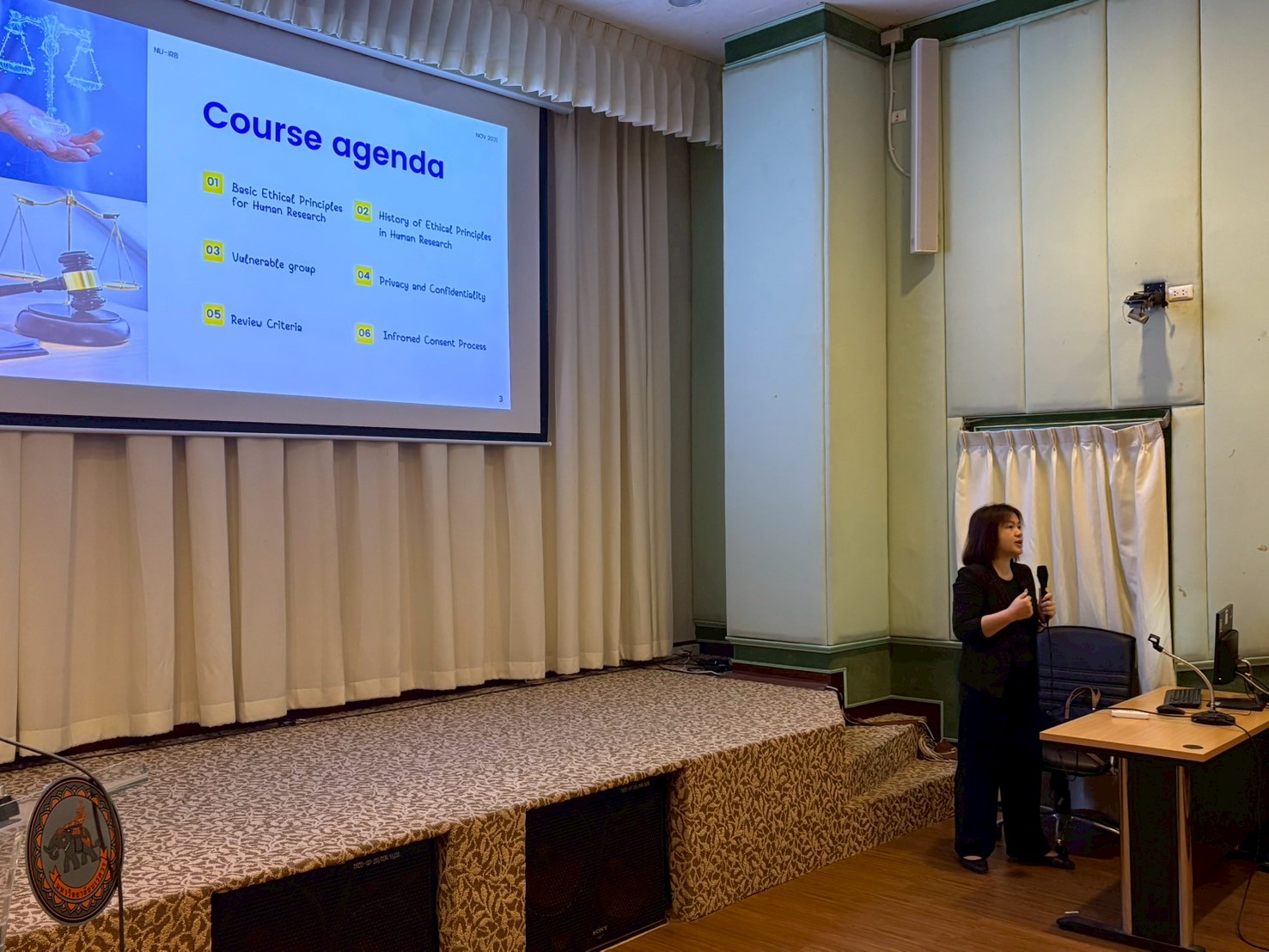 การอบรมครั้งนี้มีนิสิตระดับบัณฑิตศึกษาและอาจารย์ชาวต่างชาติ จำนวน 29 คน เข้าร่วม เพื่อเสริมสร้างความรู้ ความเข้าใจ และตระหนักถึงหลักจริยธรรมการวิจัยในมนุษย์ ซึ่งถือเป็นพื้นฐานสำคัญในการดำเนินงานวิจัยให้ได้มาตรฐานในระดับสากล