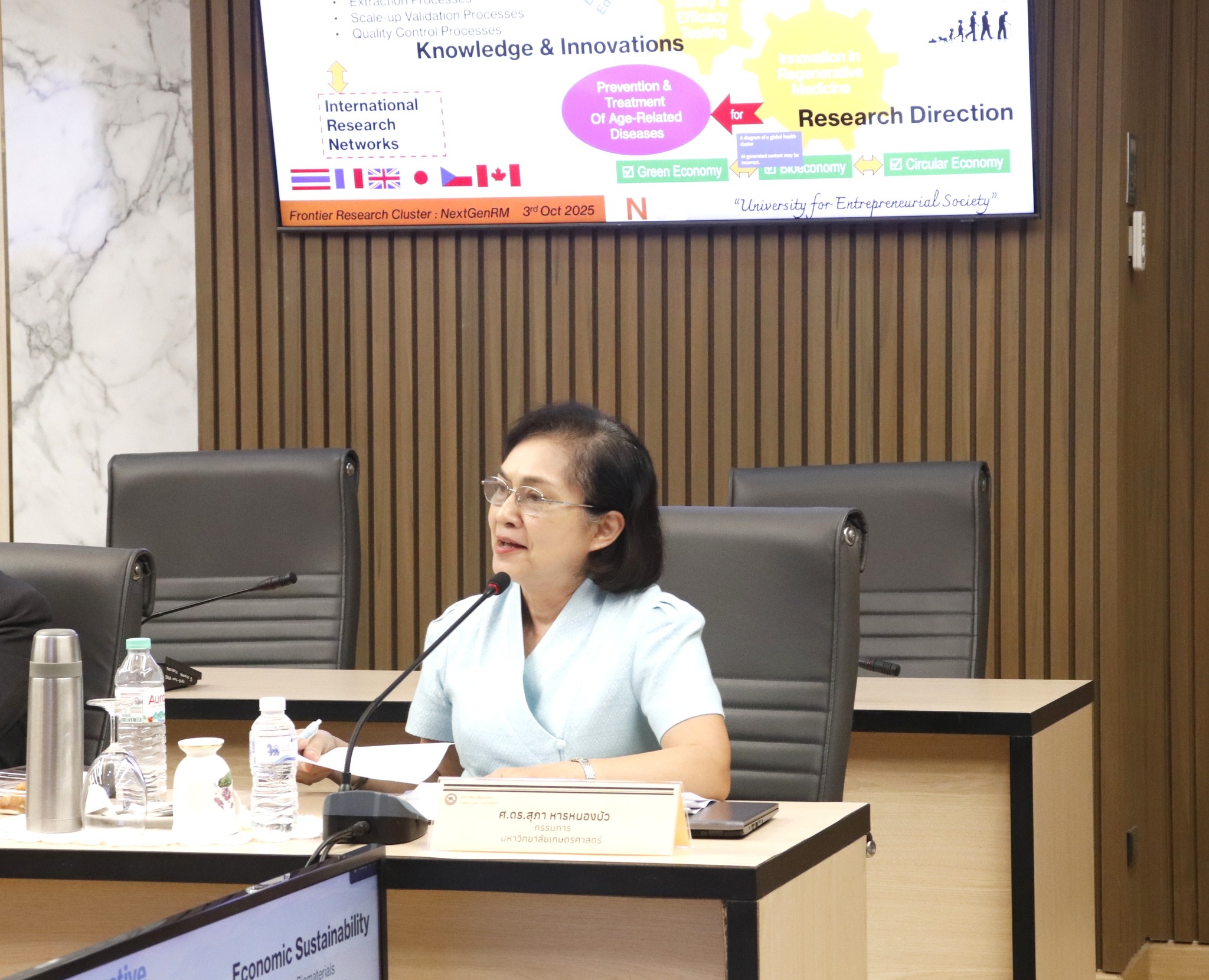 วันที่ 3 ตุลาคม 2568 กองการวิจัยและนวัตกรรม มหาวิทยาลัยนเรศวร ได้จัดการประชุมนำเสนอข้อเสนอโครงการทุนสนับสนุนกลุ่มวิจัยและนวัตกรรมแนวหน้า (Frontier Research and Innovation Clusters) ประจำปีงบประมาณ 2569 โดยได้รับเกียรติจาก รองศาสตราจารย์ ดร.ศรินทร์ทิพย์ แทนธานี รักษาราชการแทนอธิการบดีมหาวิทยาลัยนเรศวร เป็นประธานในการประชุม และได้รับเกียรติจาก ศาสตราจารย์ ดร.กรกนก อิงคนินันท์ รองอธิการบดีฝ่ายพัฒนางานวิจัยและนวัตกรรม ร่วมให้การต้อนรับ คณะกรรมการผู้ทรงคุณวุฒิจากภายนอก ได้แก่